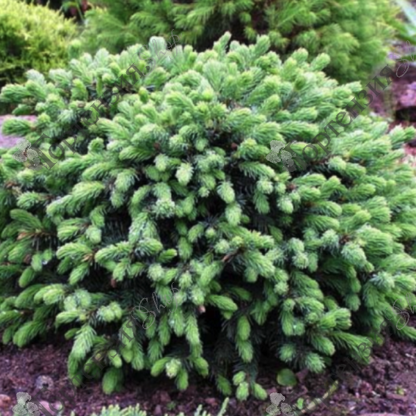 Ель сизая Эхиниформис (Picea glauca Echiniformis) -  мини-форма,  медленно растущая, крона в форме округлой подушки, позже куполообразная. В 30 лет высота растений 0,5-0,6 м и около 1 м диаметр кроны. Побеги короткие, до 2 см длиной, коричневые, тонкие растут радиально относительно центра кустарника. Хвоя 5-7 мм длиной, очень узкая, голубовато-зеленая, расположена радиально. Лучше растет на слабокислых, влажных почвах.  Светолюбива. В укрытии нуждается лишь на очень малоснежных местах.