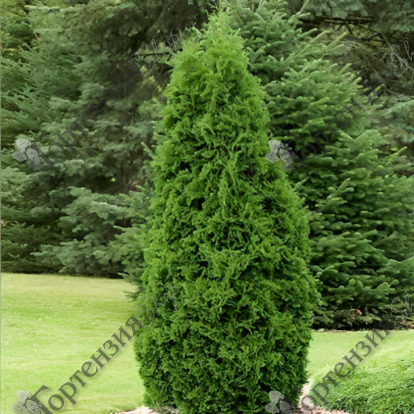 Туя западная Пирамидалис Компакта - компактное,хвойное дерево до10 м высотой. В 10-летнем возрасте высота растения до 2,5 м.Крона коническая,плотная. В молодости крона более узкая, с возрастом становится шире, образуя несколько вертикальных стволов. Хвоя чешуевидная, зеленая, зимой зелено-бурая. Побеги густо ветвятся, сильные, прижатые друг к другу. Первые два-три года после посадки рекомендуется притенение от зимних и весенних солнечных ожогов. Почва плодородные, суглинистые без застоя воды.