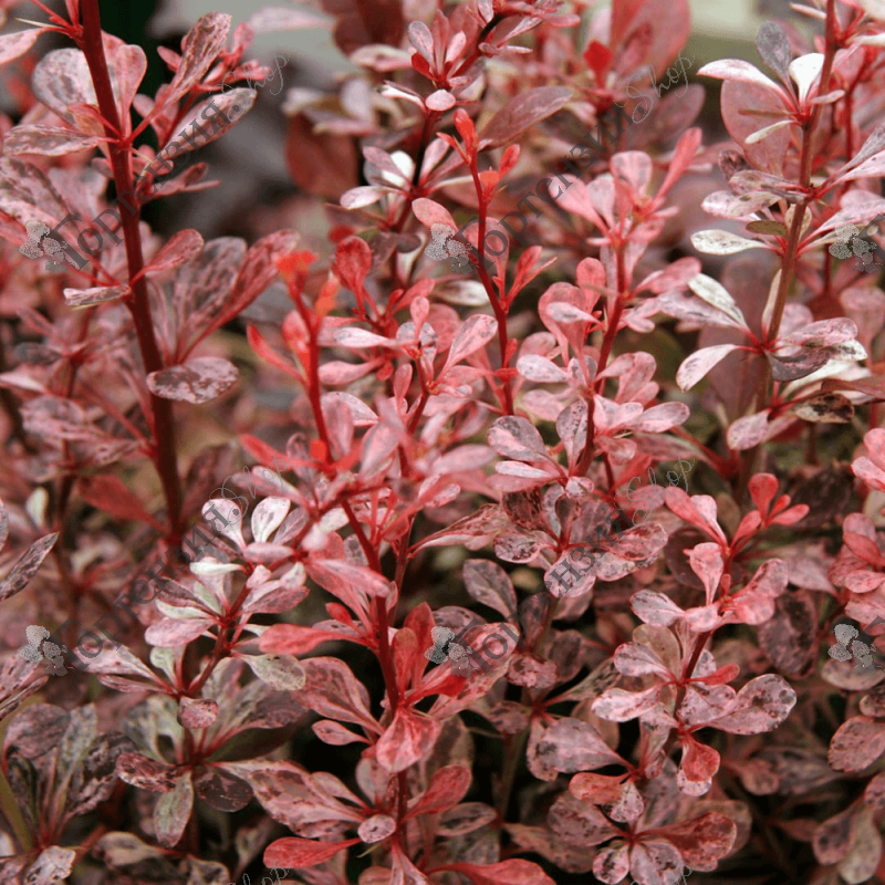 Барбарис Тунберга (Berberis thunbergii‘HARLEQUIN’) 'Арлекин' декоративный лиственный кустарник, достигающий до1,5 м в высоту и 1,2 м в диаметре. Отличается раскидистой, довольно крупной кроной с небольшими годовыми приростами и оригинальными пятнистыми листьями.Цветки одиночные или собраны в соцветия по несколько штук, внутри желтые снаружи красные, расположены по всему побегу. Молодые побеги пурпурно-красные, позже - пурпурно-коричневые.Светолюбив. К плодородию почв нетребователен.