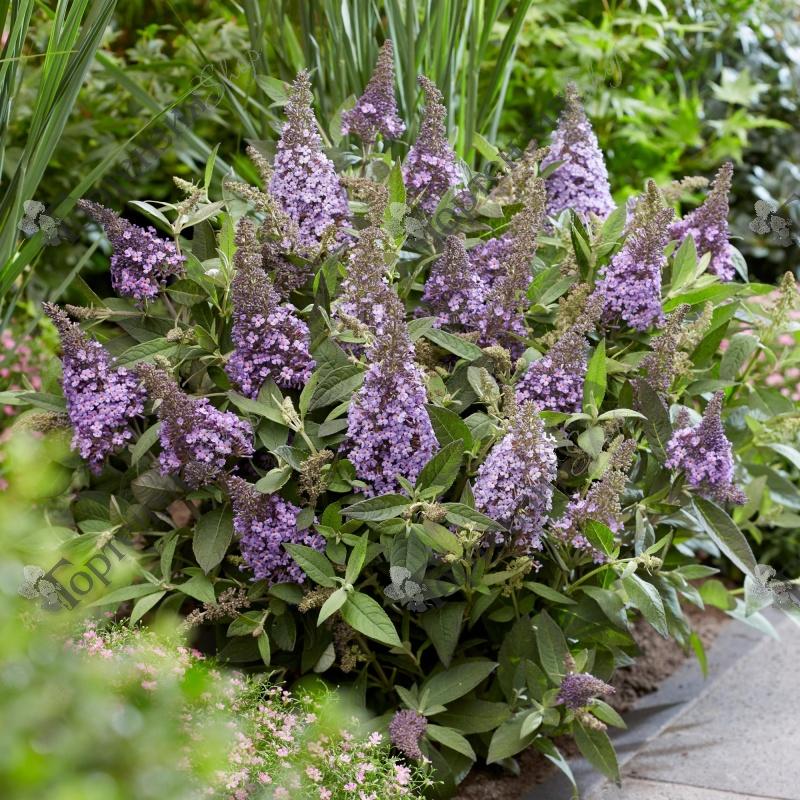 Буддлея Давида (Buddleja davidii) 'Баттерфляй Канди Литтл Лила' - компактное  растение округлой формы,высотой до 80 см , и шириной 80 см.Соцветия крупные,сиреневого цвета.Цветы имеют легкий сладкий аромат. Привлекательна для бабочек и пчел.Идеально подходит для небольших садов.
