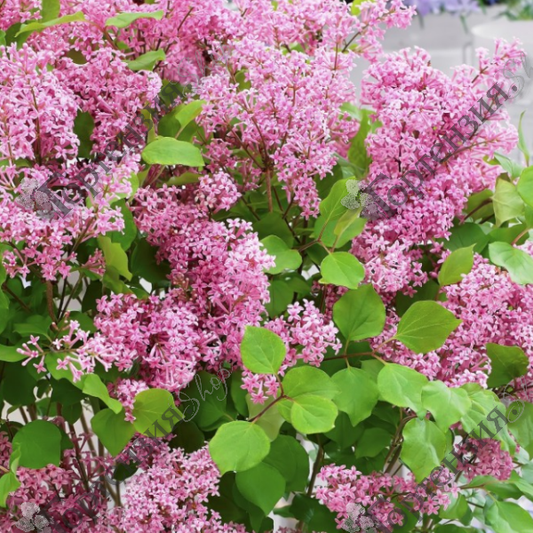 Сирень Мейера (Syringa meyeril) 'Флауэрфест Пинк' - повторноцветущий, карликовый cорт высотой до 120 см. Соцветия – рыхлые метелки, обладающие ярко-выраженным ароматом, розового цвета. Первое цветение вначале лета, второе цветние – в конце лета.После первого цветения требуется обрезка.Для посадки требуется солнечное место  и хорошо дренированная, нейтральная плодородная почва.