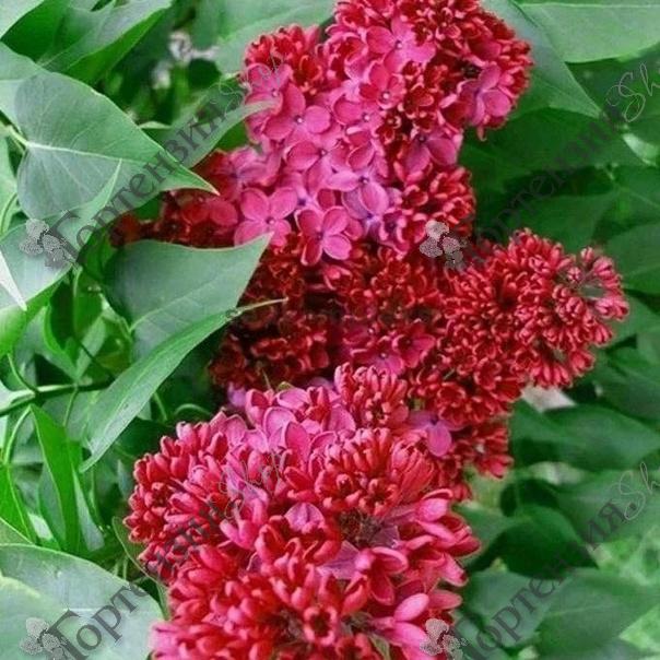 Сирень обыкновенная Красная Москва - эффектная пурпурная сирень будто устремлена ввысь. Кусты высокие, пряморослые, с темно-серыми побегами. Цветет умеренно, в средние сроки, отличается стойкой окраской цветков. Стройные плотные и очень прочные соцветия. Высота растения до 3 м., ширина 3 м. Листья темно-зеленые, плотные. Бутоны фиолетово-пурпурные; цветки: темно-пурпурные с хорошо заметными желтыми тычинками, крупные, диаметром 2 см., простые, ароматные; лепестки округлые, со слегка приподнятыми краями.