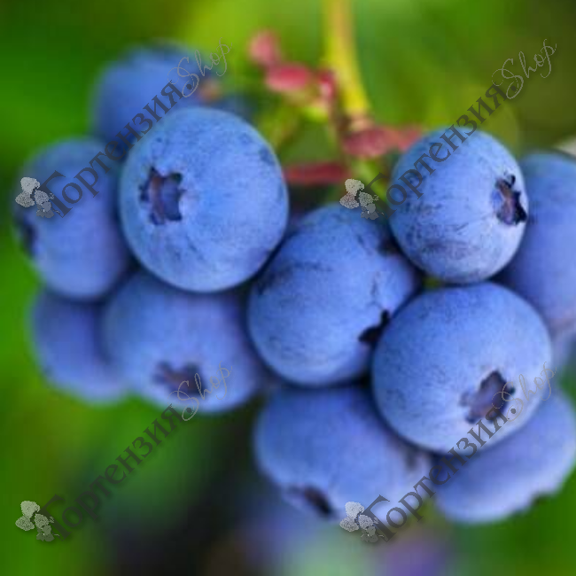 Куст активный, энергичный, средней высоты, 1,6-2 метра, с прямыми, компактно собранными ветвями. Побеги гладкие, зеленого цвета, слегка изогнуты, листья гладкие, овальные, с блеском. Цветы белые, появляются в конце мая. Ягоды созревают через 1,5-2 месяца после цветения. Кустик сорта Блюкроп очень красив, такое растение будет отлично смотреться даже в чисто декоративных миксбордерах. Осенью его листья окрашиваются в потрясающе яркий красный цвет. Ягоды впечатляют. Очень крупные, каждая ягода весит почти 2 грамма, а в диаметре достигает 1,9-2 см. Ягоды округлые, с типичным для голубики кольцом снизу, темно-синего цвета, с густым сизым налетом. Мякоть светло-зеленая, сочная и упругая. Кожица плотная и эластичная, с опушением, средняя по толщине. Ягоды собраны в длинные кисти. Они не склонны к растрескиванию, хорошо лежат и переносят перевозку. Вкус десертный, сладкий, с легкой кислинкой и нежным ароматом. Сорт относится к среднеспелым. Выдерживает морозы до 35 градусов.