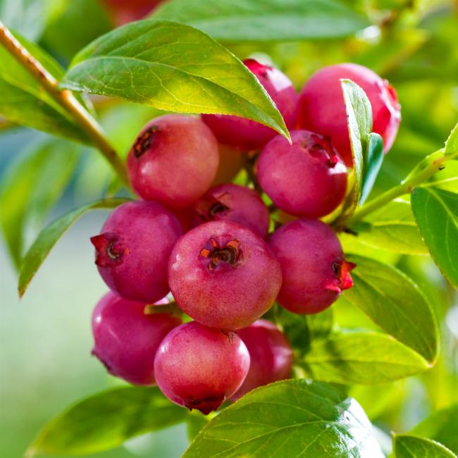 Голубика 'Pink Lemonade' (средний сорт) - новый сорт с розовыми ягодами.Экзотичная голубика! Растет розовая голубика очень быстро, в зависимости от зоны выращивания, достигает высоты 1,2 - 3,0 м. Плоды созревают с конца июля до начала сентября. Средний урожай - 3 - 4 кг с куста. Ягоды крупные, вкусные, необычного для голубики розового цвета. Плодоносит обильно. Листва осенью красиво окрашивается в яркие красные, оранжевые и розовые цвета.Место посадки:солнце, полутень.Требовательна к почве. Наиболее пригодны кислые почвы.Устойчивость к условиям среды и болезням: зимостойкий.Использование: в свежем виде, а также для переработки на соки, желе, мармелад, конфетюр и т.д. Высокое содержание в ягодах ценных веществ, важных для здоровья человека, делает их очень полезными.