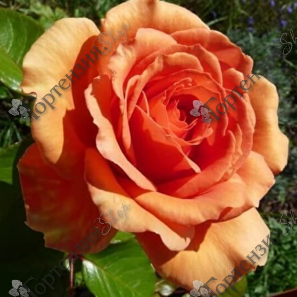 Роза чайно-гибридная 'Ashram/ Bora Bora' - цветки диаметром 10-15 см, сенсационного оранжевого тона, сверкают как пламя, устойчивы к дождю, хорошо стоят в срезке. Они появляются в зонтиках, в каждом по 3-5 цветков. Кусты крепкие, высотой до 100 см. листья невосприимчивы к мучнистой росе, устойчивы к черной пятнистости.