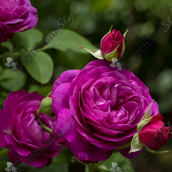 Роза полиантовая 'Heidi Klum' (Rose polyantha 'Heidi Klum') – Компактные кусты высотой до 80 см, с плотной матовой листвой, выглядят опрятно в любое время. Роза с очень махровыми, фиолетовыми цветами. Цветы довольно крупные (10 см) имеют чашевидную форму из примерно 41 лепестка. Располагаются соцветия до 12 шт. Обладает сильным, запоминающимся ароматом, который часто описывают как смесь старинных роз с фруктовыми и пряными нотками. Повторноцветущая, почти непрерывное цветение. Растения устойчивы к болезням. Любит солнце, поэтому выбирайте для нее хорошо освещенное место. Предпочитает плодородную, хорошо дренированную почву. Морозостойкость до -29С.