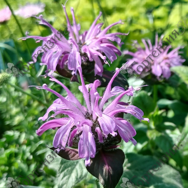 Монарда 'Блю Мун' (Monarda ‘Blue Moon’) корневищное многолетнее растение. Высота 60 см, листья пальчато-рассечённые, зеленые. Цветки трубчатые, сиреневые, собраны в головчатые соцветия диаметром до 6—7 см, располагающихся одно над другим по стеблю, цветут с июня по август. Растение привлекает бабочек и пчел, листья и цветы ароматны. Морозостойкость -34С. Почвы предпочитает дренированные, кислые. Используется в миксбордерах, групповых  посадках,  в альпийских горках, бордюрной посадке и на срезку. Монарда также известна как Бергамот. Серия SUGAR BUZZ®